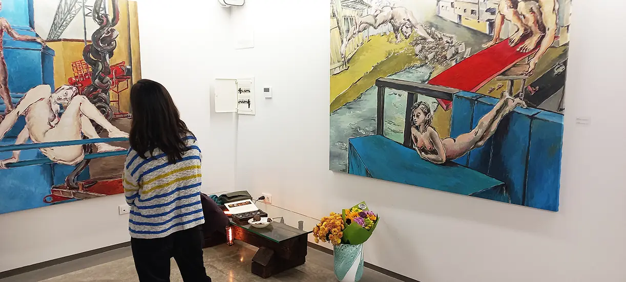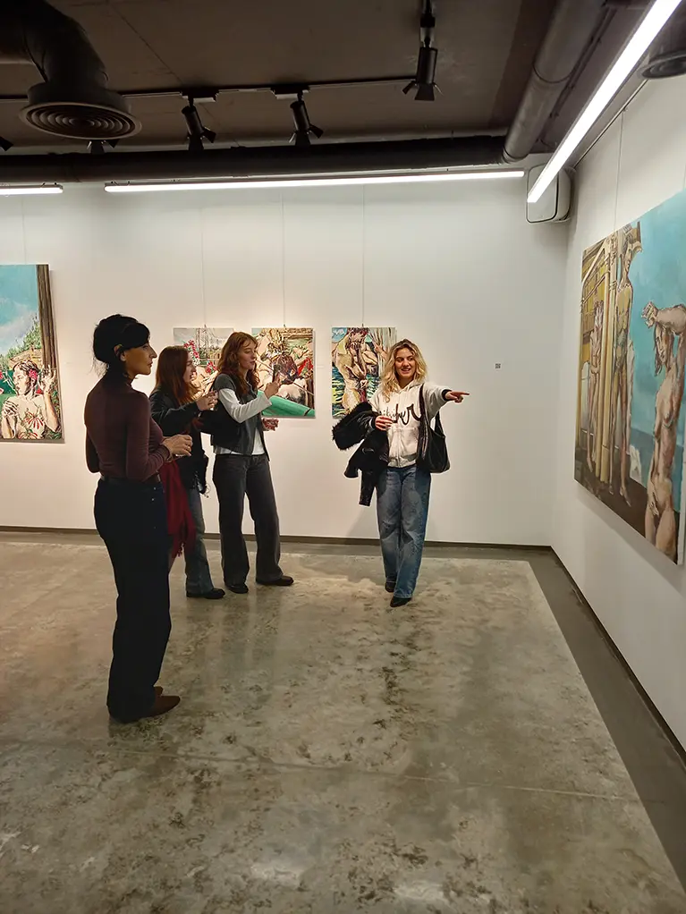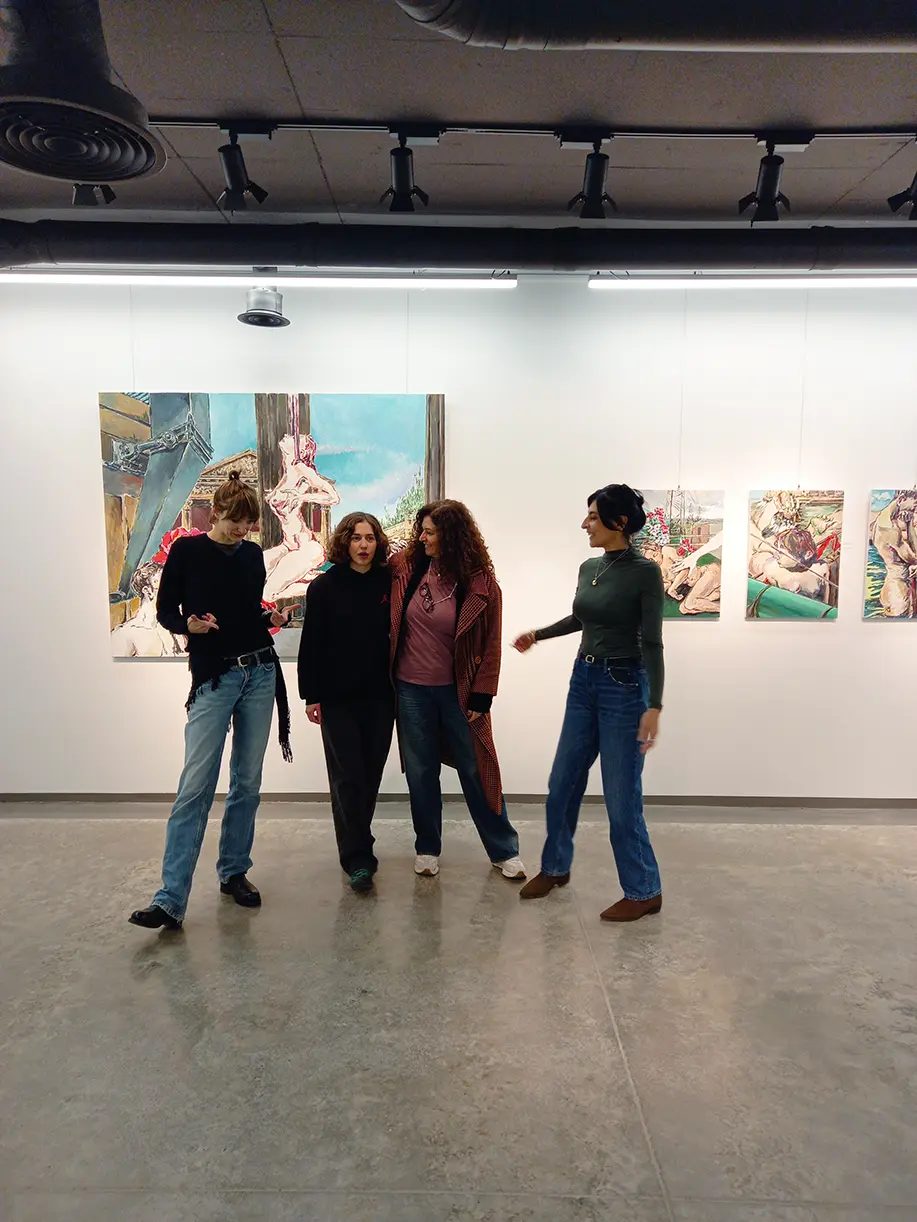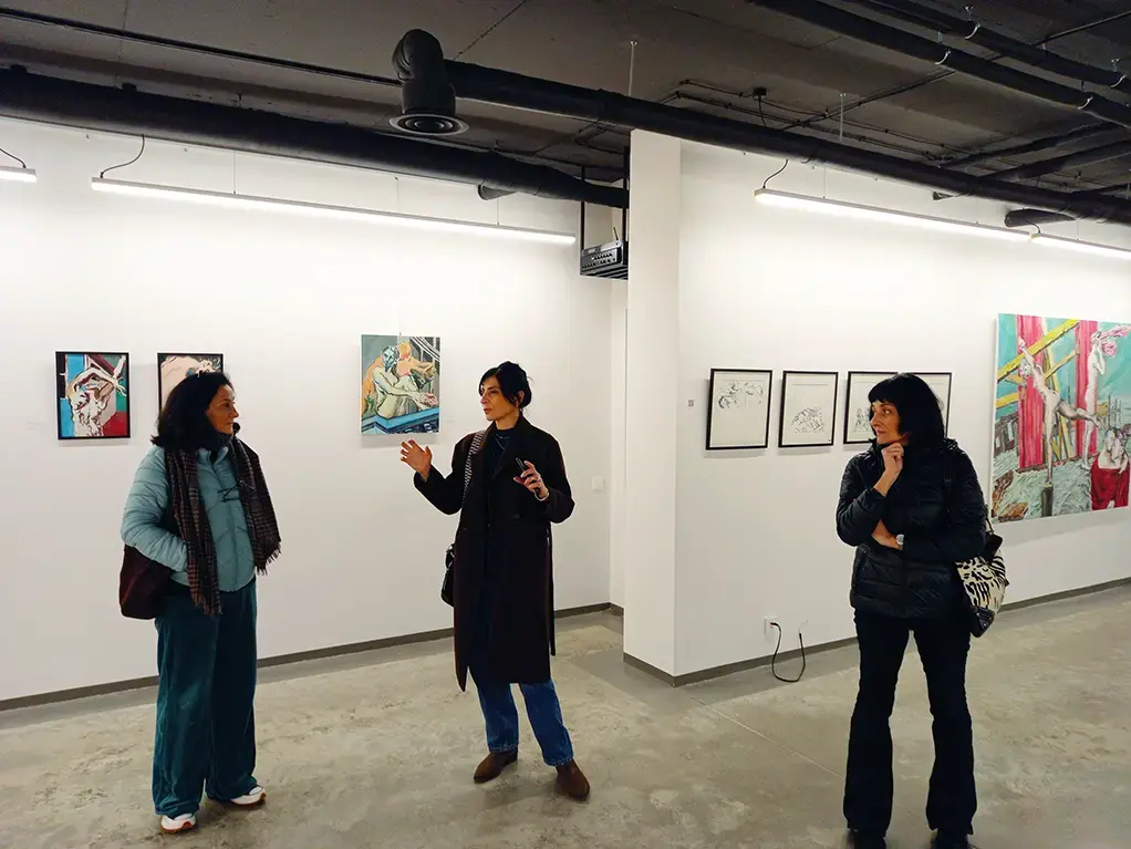 Closing the year, from December 19, 2023, to January 14, 2024, she contributed to the joint exhibition Holiday/Fiesta at n9Gallery, curated by Maka Iovadze. The exhibition featured three works from the Improper Intersections series, including a four-part panel measuring 200 x 140 cm, and two additional works sized 42×30 cm, all created using paper and acrylic.