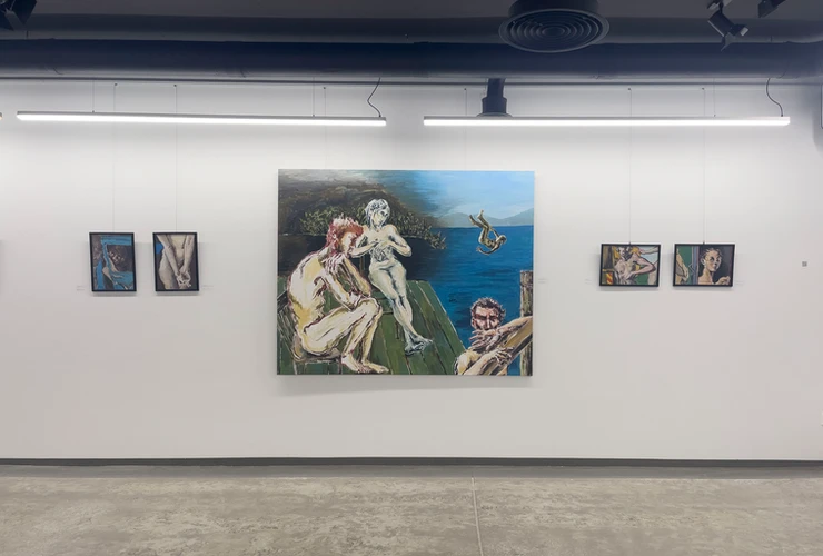 The exhibition raises a question both simple and profoundly elusive: What is the time given to us? The artist approaches this exploration as a witness, someone tracing the places where time folds, slips, and rearranges itself. Her large-scale canvases pulse with scenes in motion: waves breaking, bodies falling, winds overtaking, the urgent desire for shelter. Works such as 'Someone Fell Somewhere', 'Flood', 'It's Windy Now', and 'Overtaking' suspend the viewer in moments of transition, where events feel both approaching and distant. These artworks seem to emerge from a world perpetually on the edge; geographically, emotionally, and temporally.